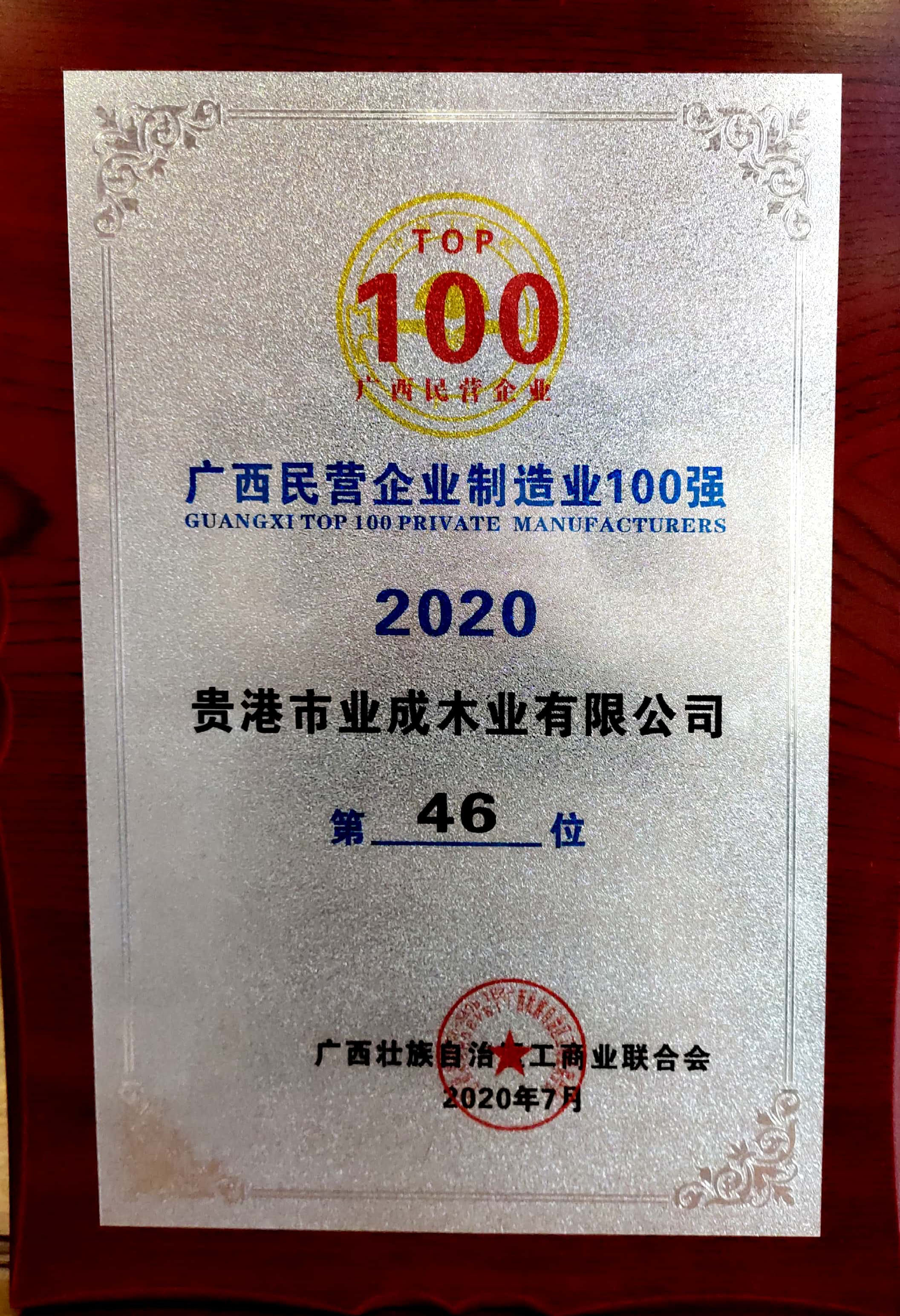 当前位置:网站安博网页版登录入口 >荣誉资质 > 2020广西民营企业制造业100强